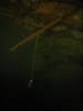 Ensimmäisessä sukelluksessa ei oikeastaan ollut mitään suunnitelmaa, kuvailin vähän ja nappasin pari videon pätkää avolouhoksen puolella, mutta sitten aattelin, että sama kai kiertää, vähän ilmataskulla. Uusittu päävalo, toimi loistavasti, ja sen valolla sain muutaman hyvän kuvan, ainakin olosuhteisiin nähden. Tietysti olisi ollut hyvä, jos olisi ollut paljon enemmän valoa mukana. Reitti suuntautui puhkaisulta sisään ja ilmataskuun, missä otin muutaman kuvan pinnan päälläkin erilaisilla asetuksilla. Sieltä takaisin tullessa kuvailin vähän seiniä, mutta ei niissä nyt niin paljon ole kehumista, kallioita se on pinnallakin, joten siellä saa tarkempia siitä jos niikseen tulee. Menin syvän risteyksen pohjalle kuvaamaan narunpäätä, mikä tulee kellolta keskelle risteystä kiveen. Muutaman kuvan kun olin ottanut, niin panin merkille, kuinka oudosti laitteistosta lähti ääntä, kuullostelin sitä siinä hetken aikaa, ja ihmettelin, sen epäsäännöllisyyttä omaan hengitykseeni nähden. Aattelin, että tarviiko ottaa paketti selästä pois ja kattoa, mutta samassa huomasin pari ylimääräistä valolähdettä tulevan kellon suunnalta risteyksen reunalla. Täytyy myöntää, ettei äänestä voinut sanoa yhtään, mistä suunnasta se tuli. Mielenkiintoista kuitenkin kuinka paljon enenmmin se kuului. Nappasin muutaman kuvan vastaantulioista, ja jatkoin itse ylös kellolle ja siitä sitten dekotasanteelle makoilemaan. Siinä makoillessa kun ei muutakaan tekemistä ollut, niin harjoittelin paketin pois ottamista ja päälle pukemista.
